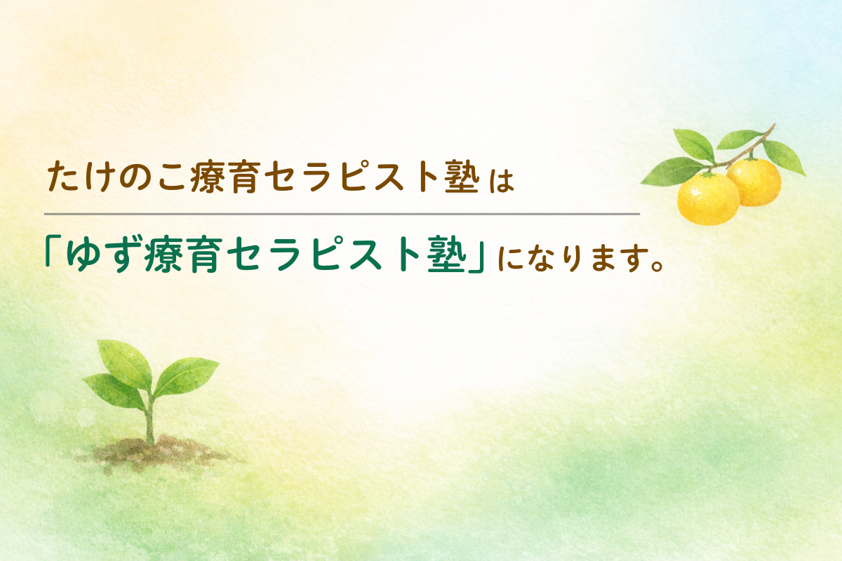これまで「たけのこ療育セラピスト塾」として活動してきたこの場を、今後は「ゆず療育セラピスト塾」という名前で運営していくことにしました。