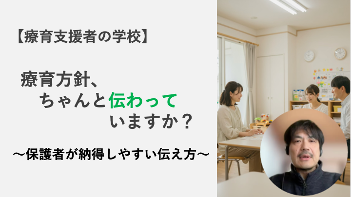 この動画では、保護者が納得しやすい療育方針の伝え方について、現場経験をもとにお話ししました。